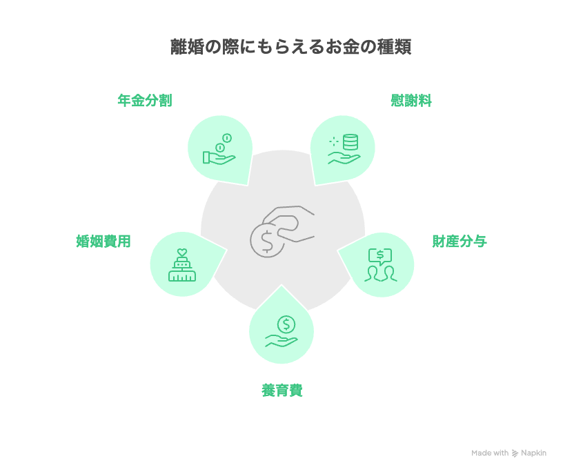 離婚に伴って受け取れる可能性があるお金は複数あります。